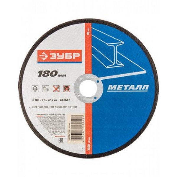 Круг отрезной абразивный ЗУБР по металлу, для УШМ, 180х2,5х22,2мм