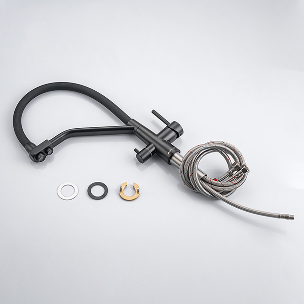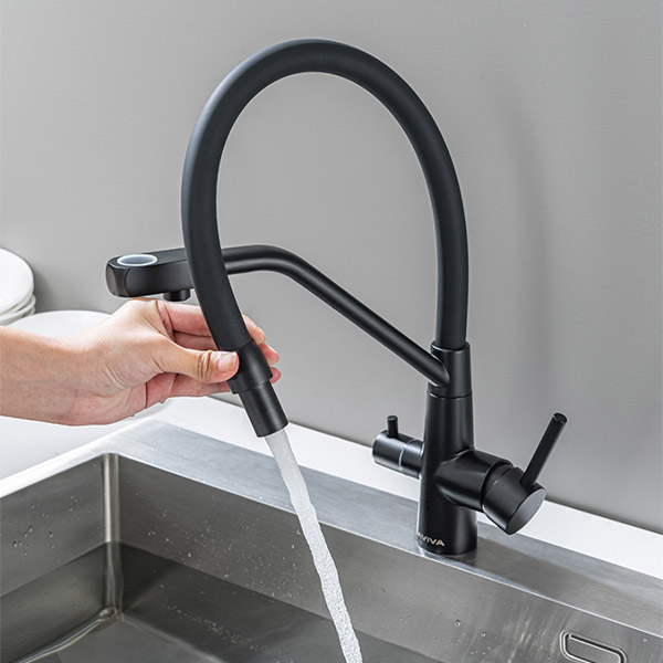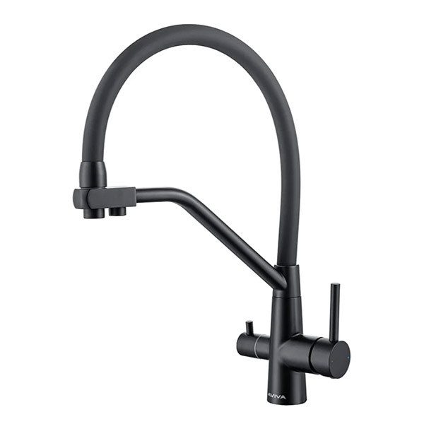 Смеситель кухонный Aviva с гибким изливом и краном для питьевой воды, черный матовый