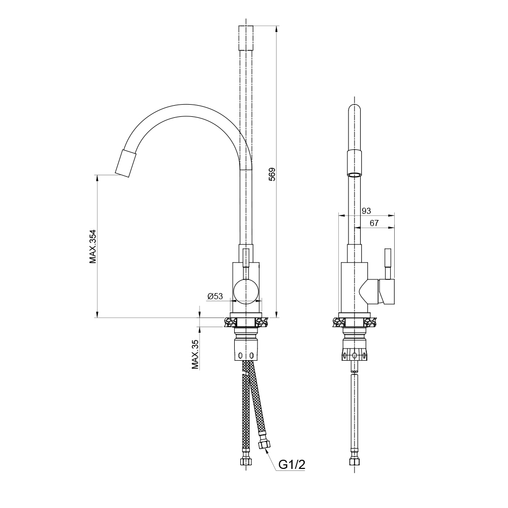 Смеситель Olive's Balear с гибким изливом, черный/нержавеющая сталь