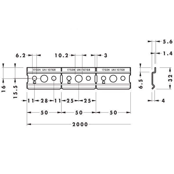 Планка для навесов, L-2000, Camar, H-32 мм