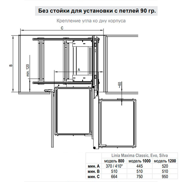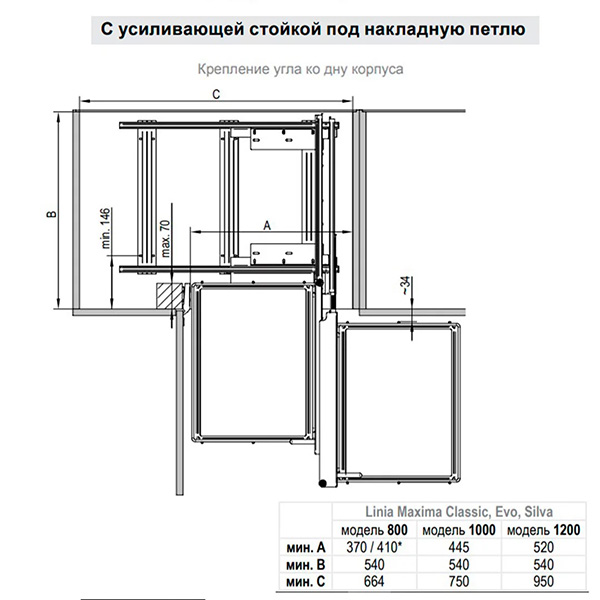 Волшебный уголок Maxima Classic с доводчиком в модуль 800 мм, правый, хром