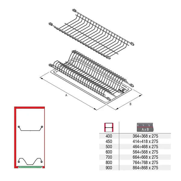 Сушка для посуды Siena, в модуль на 500мм (металлический поддон)