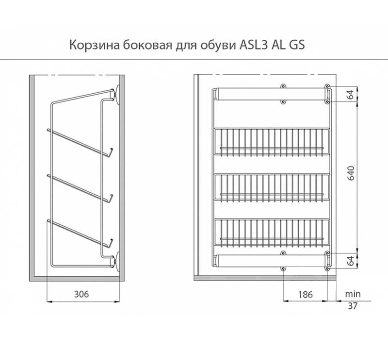 Обувница выдвижная трехъярусная VIBO 306*504*789мм