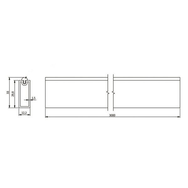 Штанга прямоугольная антискользящая 12x32 мм, 3000мм, графит