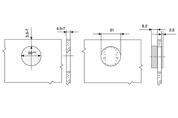 Петля Samsung Irex вкладная 94°, Slide On для стеклянной двери от 5мм, без доводчика, с МП
