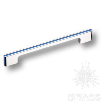 182160MP02PL12 Ручка мебельная модерн, 160мм, глянцевый хром с синей вставкой