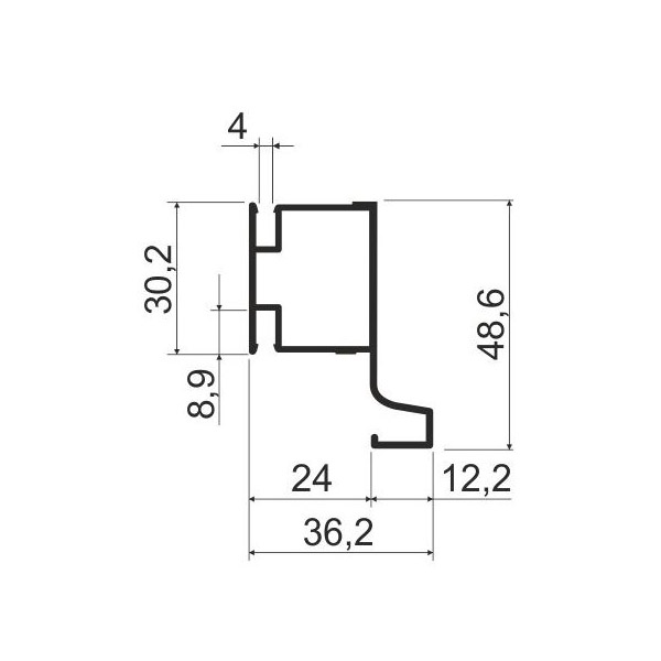 Ручка-профиль вертикальный промежуточный L-образный для плиты 18мм, 6000мм, латунь