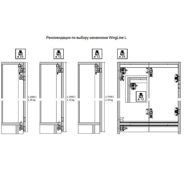 Комплект фурнитуры WingLine L 12 кг самозакрывание, L