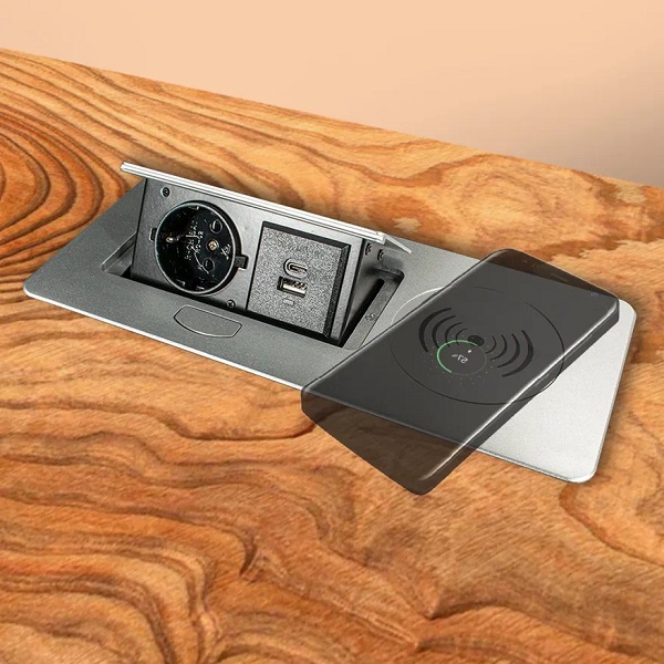 Блок розеток выдвижной горизонт. Complex, EURO, USB A+C, беспр. зарядка, 250В, 2700W, серебристый, 1,8м