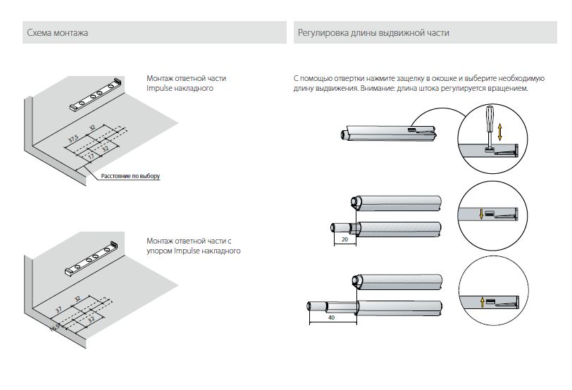 Механизм Impulse накладной 40мм c магнитом на липучке, белый+ стопор