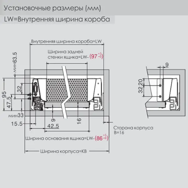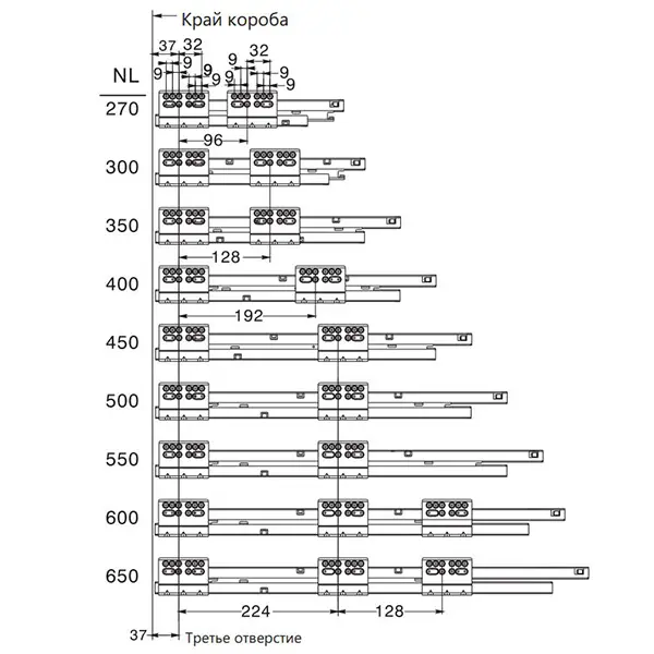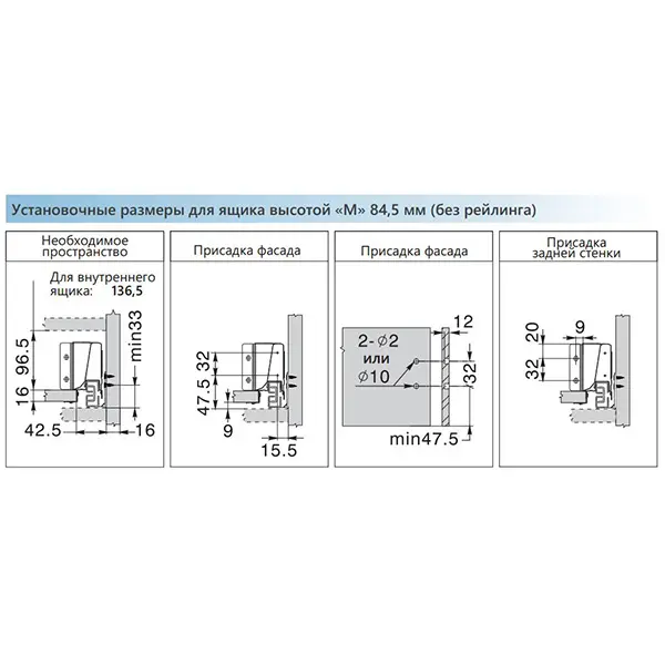 крепление задней стенки ящика H 224 мм, 2 шт.