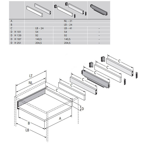 В комплект ящика Hettich Avantech You NL-270х101мм, Silent System, серый входит: