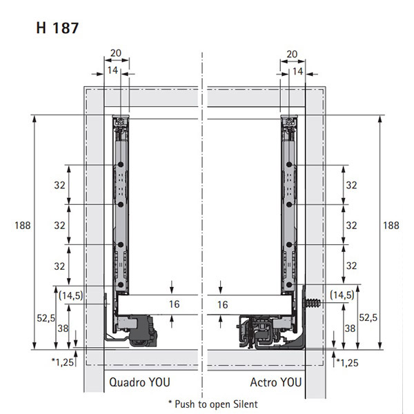 Оцените умные функции ящиков Hettich! Один выдвижной ящик, два вида направляющих и при этом единая карта сверления. Система регулировки и сборки скрыта от глаз. Возможно выравнивание фасада по вертикали, горизонтали и наклону. Нет необходимости во фрезеровке дна ящика. Защита от случайного опрокидывания.