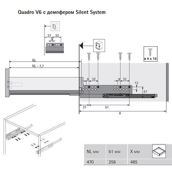 В комплект ящика Hettich InnoTech Atira 470х54 мм, антрацит входит: