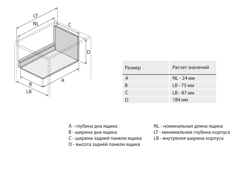 Длина ящика, мм
